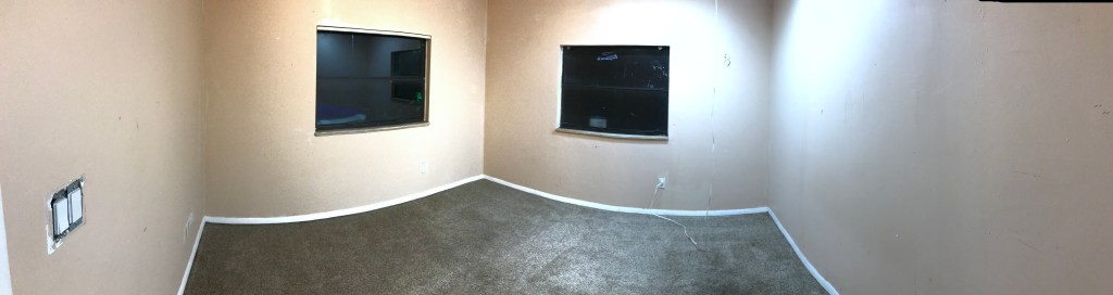 When we first found our house, it looked like it had 3 bedrooms. This was one of my wish list items, along with 2 bathrooms and at least 1200 square feet. Upon further research and learning about real estate, we learned that that the third room can’t be classified as a such since you have to go through the second to get to it – it doesn’t have its own access to the rest of the house – so it would instead be considered a bonus room. This was okay, it just removed the question of which room would be the guest room and which would be the office, no big deal.
